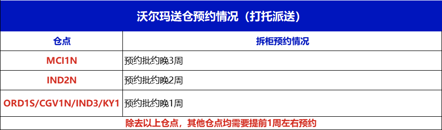 沃尔玛热门仓送仓情况