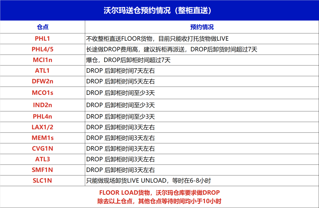 本周亚马逊整柜直送仓点等时明显增长,IUSF、HOU8、LFT1仓点平均等待时长非常长,需要1-2天。以下是亚马逊热门仓整柜直送的情况: