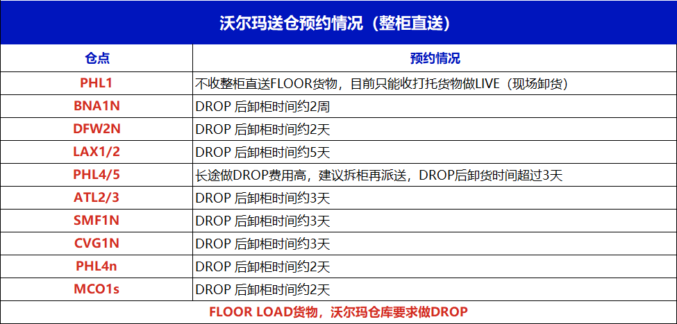 本周沃尔玛整柜直送BNA1N仓点DROP后卸柜时间需要2周,相对较久,具体情况如下:
