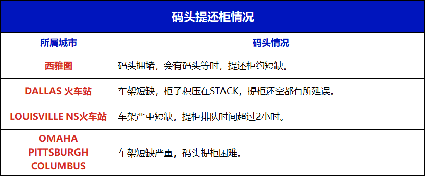 前依旧是以下几个码头车架短缺严重,具体如下