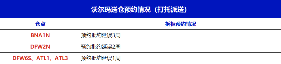 沃尔玛热门仓送仓情况