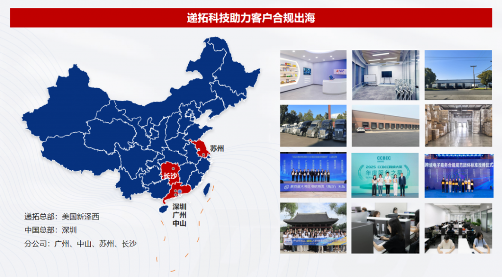 公司总部在美国新泽西,为高效服务全球客户,在中国深圳、广州、中山、苏州、长沙等地设有办公点。近年来,公司积极拓展业务版图,将服务延伸至中东、拉美等新兴市场,为外贸、工厂及跨境电商企业提供一站式供应链解决方案。