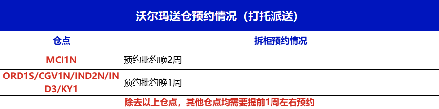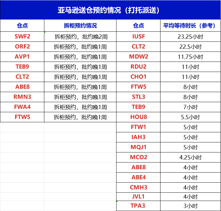 本周打托派送情况也有所好转,像IUSF、IUSF仓拆柜预约等待时长将近一天,具体情况如下: