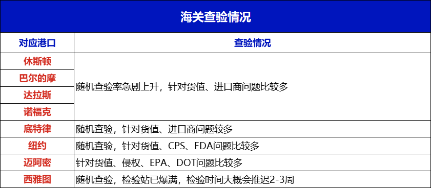 本周达拉斯港口随机查验率有所上升,主要针对货值,进口商问题比较多,通往该港口的货主需要留意。