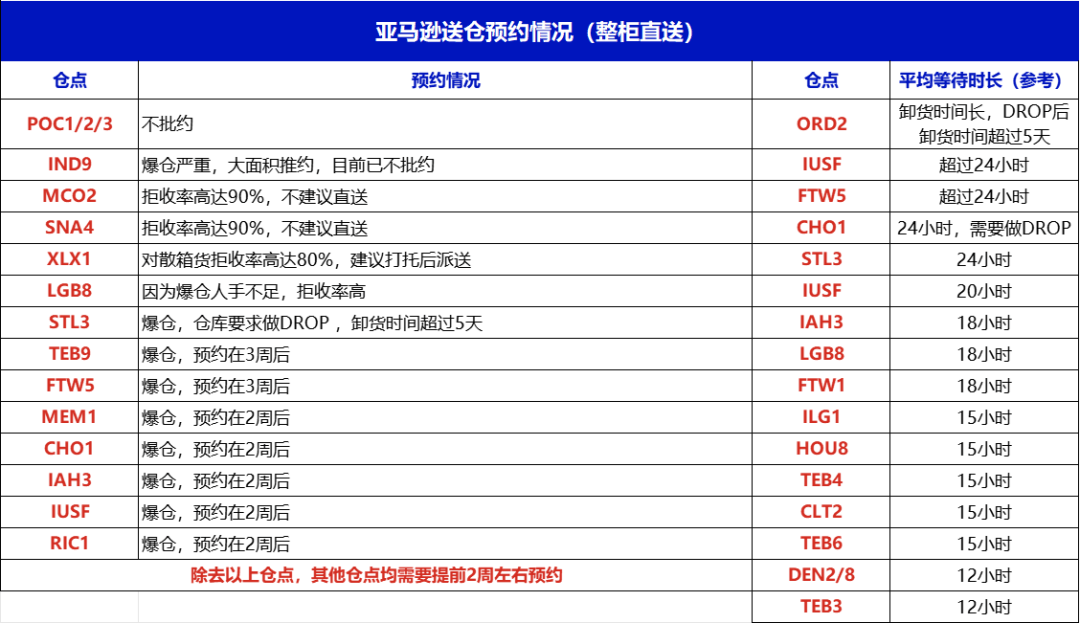 本周亚马逊整柜直送仓点等时明显增长,ORD2仓点卸货时间非常长,DROP后卸货时间超过5天。