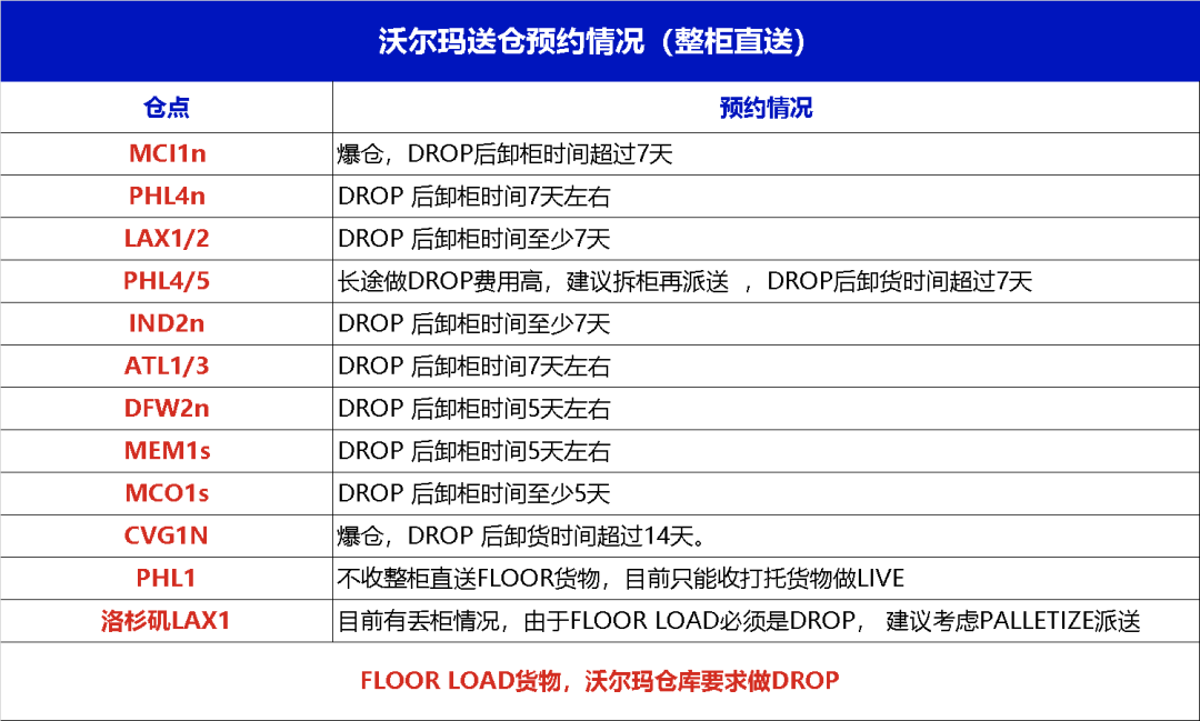 沃尔玛热门仓送仓情况